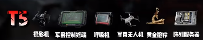 T5:攝影機、軍用控制終端、呼吸機、軍用無人機、黃金瞪羚、陣列服務器