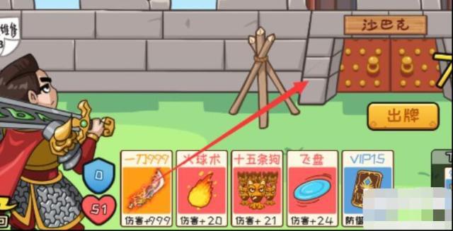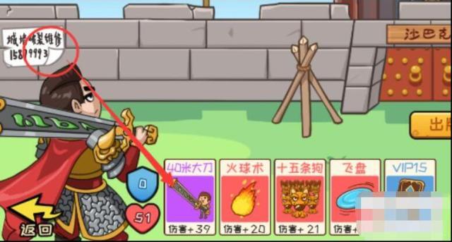 5、在第7回合會刷出香腸,將香腸移動到屠龍刀上,會變成40米大刀,然后點擊城墻上的小廣告,會出現999.