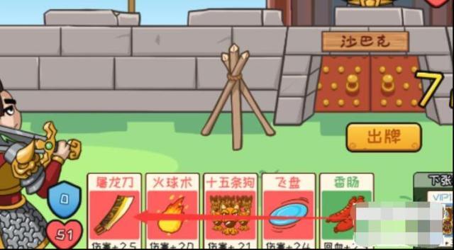 1、首先,隨便選擇中間的牌輸出,只要留下屠龍刀和外骨骼這兩張牌。